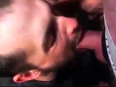 Crossdresser sucking mature buddies cock and swallows it all